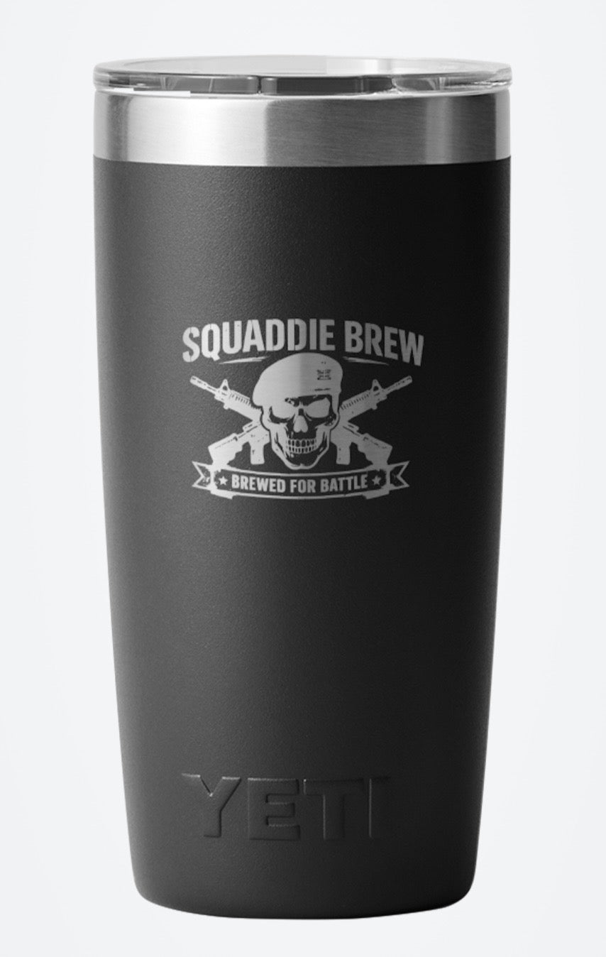Prepare for action with our Squaddie Brew: Battle Ready Tumbler. Designed for those who thrive in the field, this rugged YETI tumbler keeps your drinks at the perfect temperature, whether you’re on a mission or just need a boost. Featuring the bold Squaddie Brew logo and a skull-and-rifle design, this tumbler embodies the spirit of resilience and strength. Made from durable, high-quality materials, it’s perfect for keeping your coffee hot or your water cold in any environment. Stand ready, stay fueled, and take on the day with confidence!